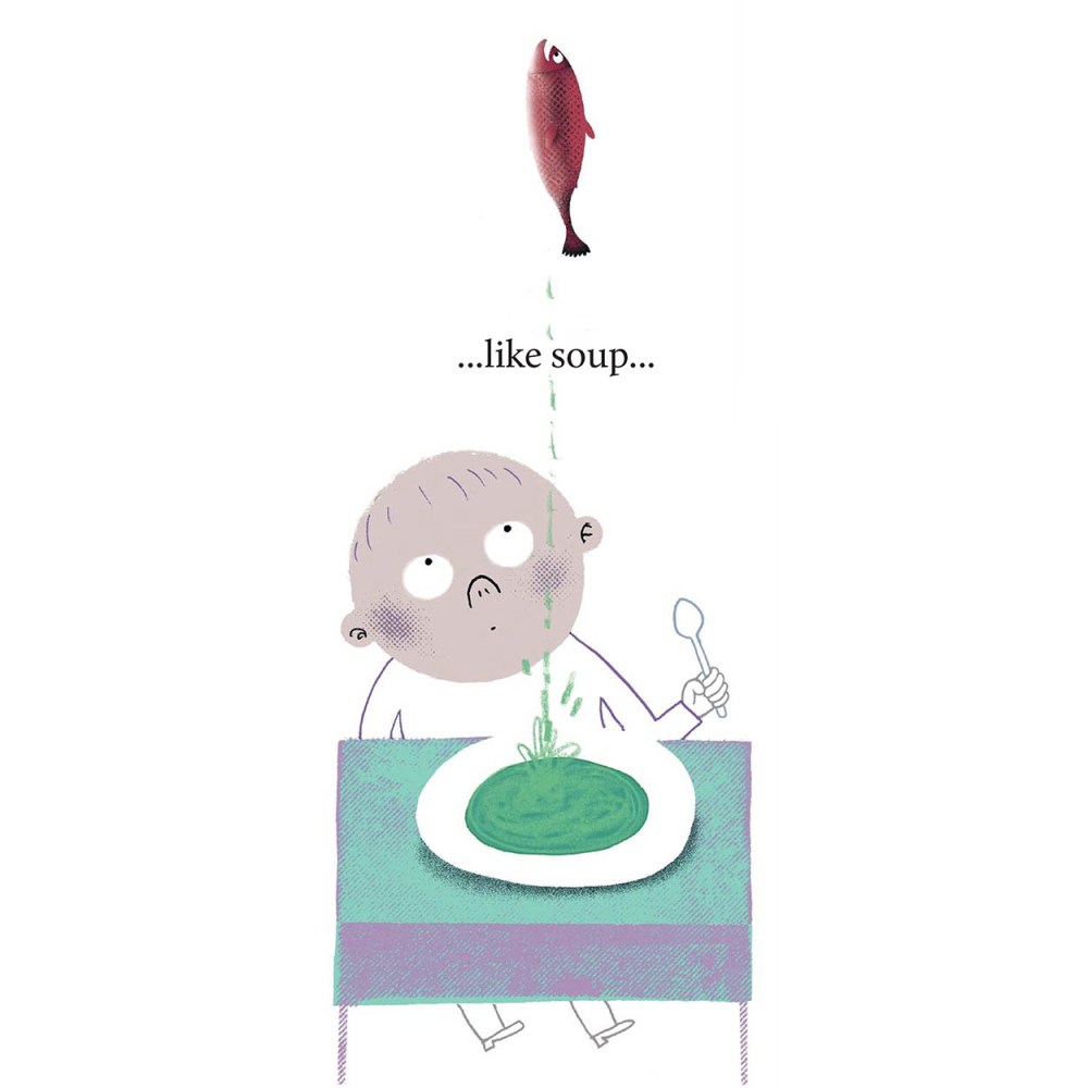 My illustrations are almost systematically meaningful juxtapositions. Salmon only swim up rivers. Exchanging the river for a spouting fire hose or a waterfall of sweat drops is not only visually funny and intriguing, but it is also a conflict that triggers my mind. After all, creativity emerges only from friction.