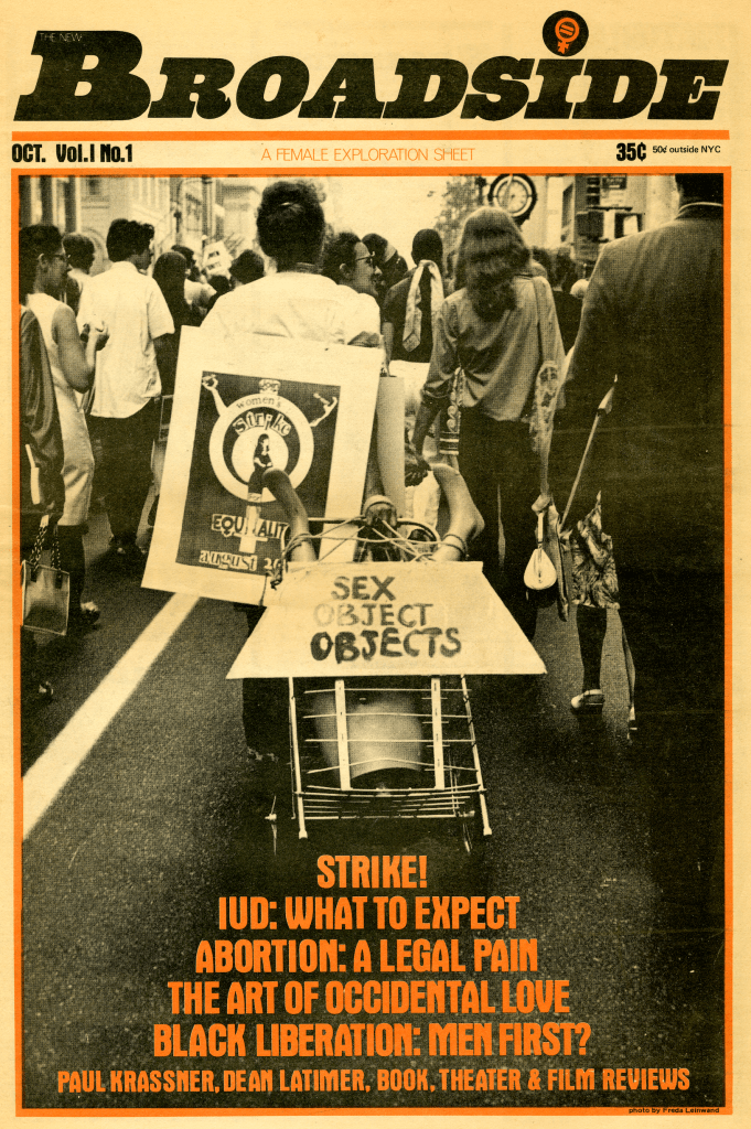 The word “generous” should be highlighted. When often he was asked byfriends to help fund a publication venture, he would gladly do it, and usually throw in my services as part of the investment. This, indeed, is how I came to become the art director and designer of the feminist periodical Broadside. It was edited by his ex, Mary Phillips, a former flight attendant who was a writer, photographer and editor with experience in sexist inequity.